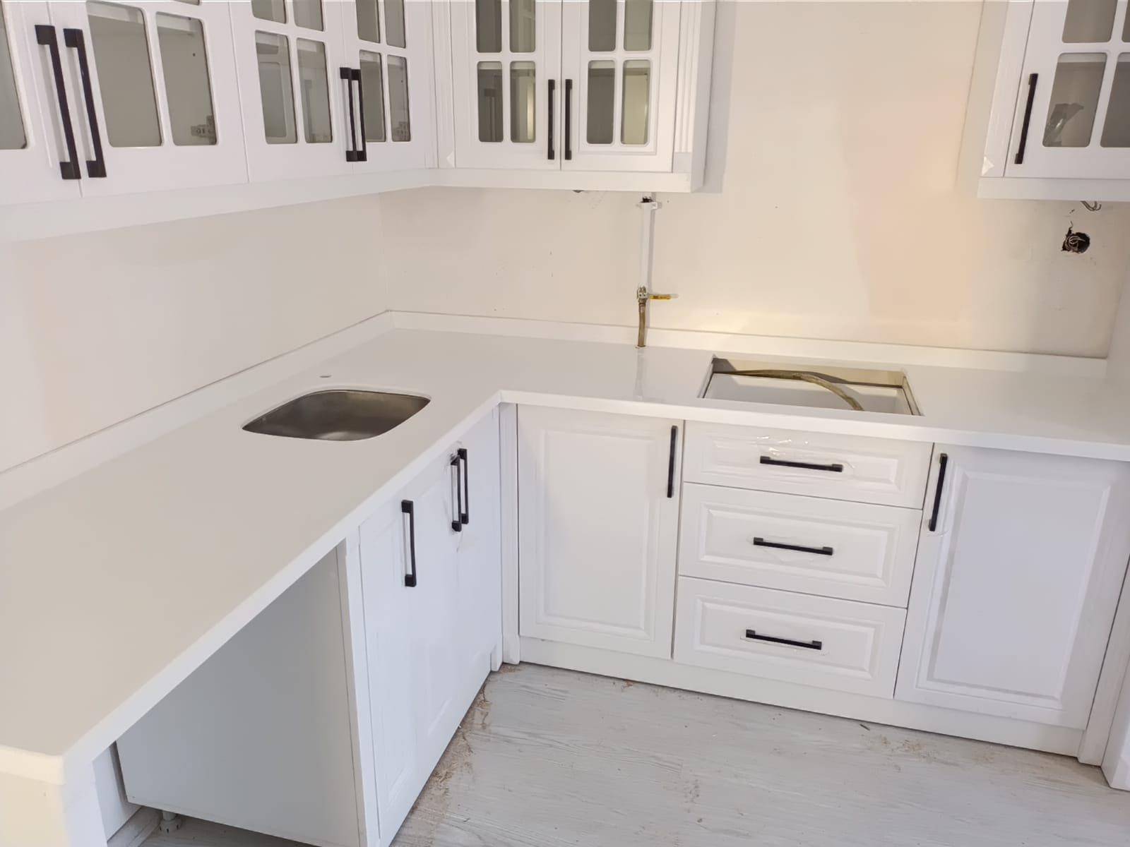 Amaca özel tasarlanarak evyesiz, gömme evyeli, çift evyeli gibi çeşitleri kolaylıkla uygulanabilir.